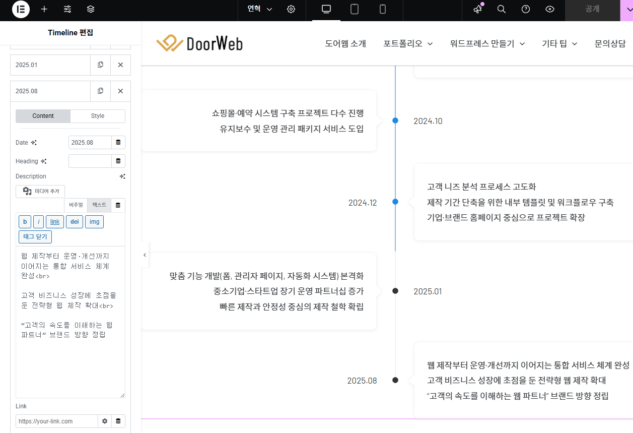 연혁은 적어둔 값 기준에서 유지 관리만 하시면 됩니다.